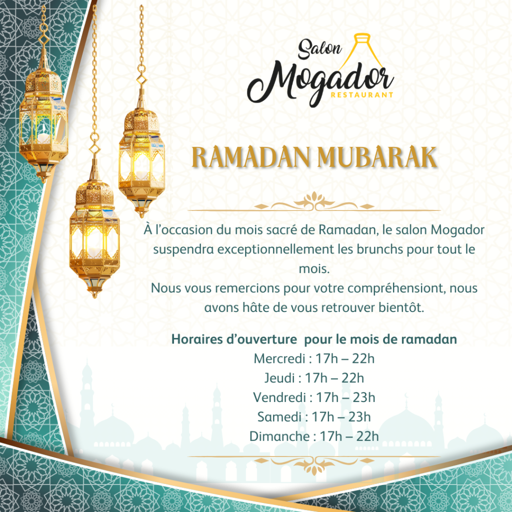 Souhaitez-vous organiser un anniversaire, un mariage, un baptême ou autres évènements? Salon Mogador est prêt de vous accueillir avec vos invités et vous fournir un menu sur mesure.